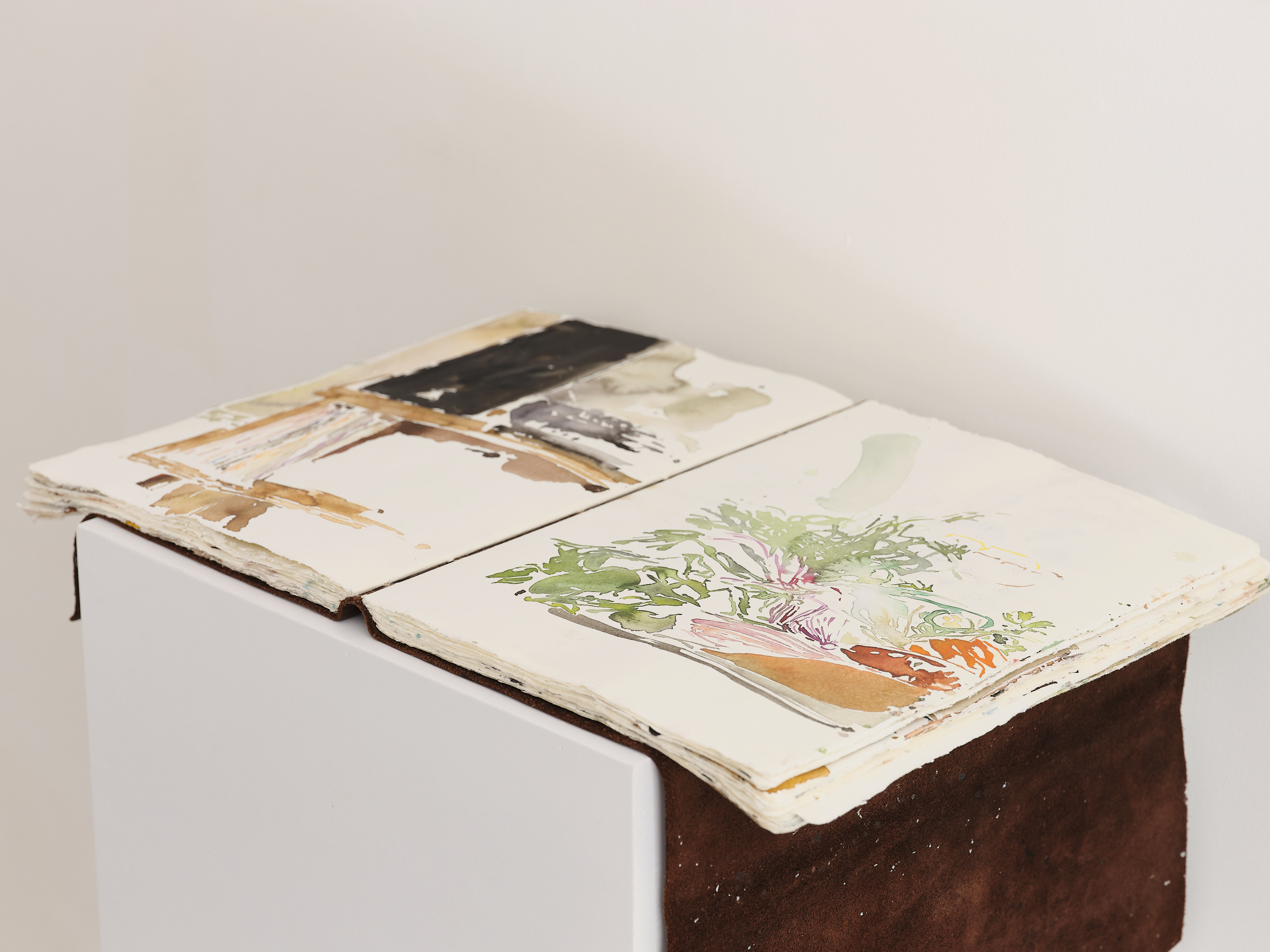 Mernin works through an inspirational image or encounter, pushing representation to the very limits of legibility and activating the unwieldy significance of gesture. He uses watercolor, ink, and graphite on paper to develop these inquiries into form, gesture, and meaning making. Works of art in their own right, Mernin’s works on paper offer insight into the many moments of perception and representation that accumulate while he gestates his larger paintings.